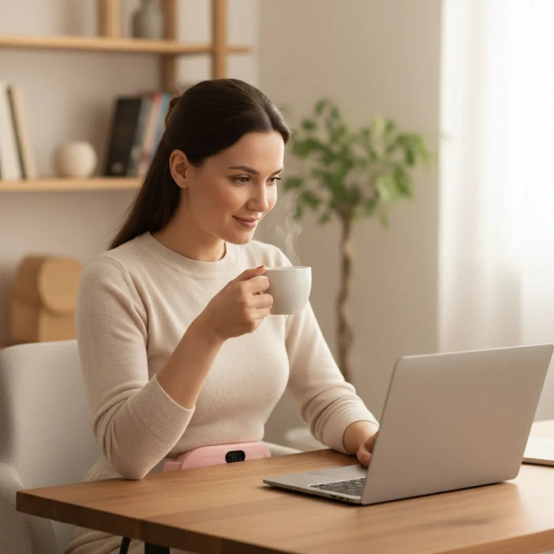 Slip on Mireva for a warm, comforting massage exactly where you need it — belly or lower back. The heat melts the edge off cramps, the rhythm helps your body exhale, and the fit is so cozy you’ll forget it’s there.
